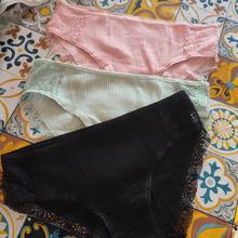 Trendy Design: Low-rise style with lace patchwork detail.